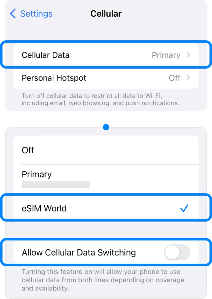 Select your eSIM on [Cellular Data].
