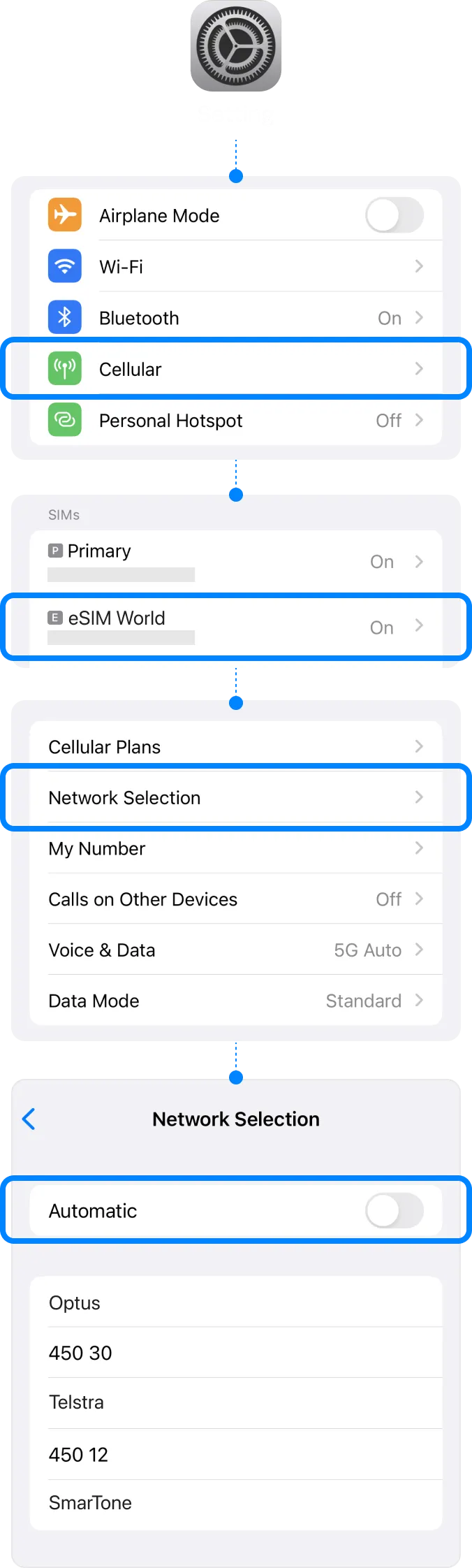 | ▸ | Tap [Cellular Data] Select your eSIM. |