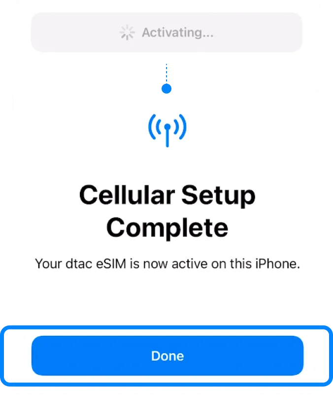 Your eSIM will be connected to the network, which may take a few minutes. Once completed, tap “Done”.